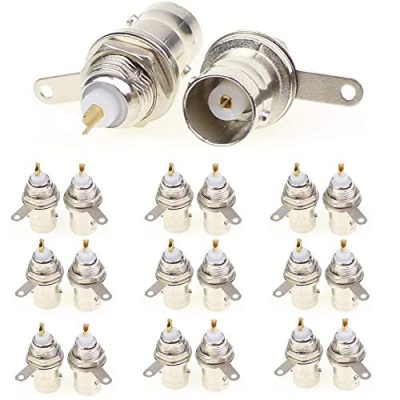 The V-Fiabilidad 20 in Pack BNC Female Panel Mount Connector with Nut Bulkhead Panel RF Connector Solder Jack Adapters is a reliable and versatile connector for various RF devices. Made with nickel-plated brass and a gold-plated pin, this connector ensures a stable signal. It features a BNC Female connector on one side and a panel mount with nut bulkhead handle solder post on the other side. With its compatibility with a wide range of RF devices, including video and Ethernet applications, it is great for many projects that involve BNC Type connectors. Whether it’s for antennas, radios, Wi-Fi, telecom, or digital communication systems, this connector is a reliable choice for seamless connections.