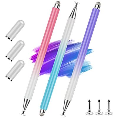 The Stylus Pen for Touch Screens is a versatile accessory compatible with various devices such as iPad, iPhone, Android tablets, Chromebooks, and more. Designed to provide a better touch point than your finger, this stylus allows for precise tapping, swiping, and drawing on touchscreens. It features both disc tips and fiber tips for drawing, sketching, coloring, and note-taking. With a stylish blue, pink, and purple gradient design, this stylus is not only functional but also fashionable. The high precision and sensitivity of the stylus ensure accurate and smooth writing or drawing, while the slender alloy body and magnetic cap enhance the overall user experience. Protect your screen from scratches and fingerprints with this reliable stylus pen.