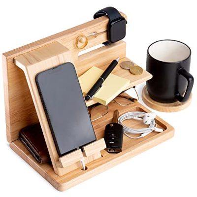 The TESLYAR Wood Phone Docking Station is a stylish and functional organizer that helps you keep your daily items in one place. Made of high-quality solid wood and featuring a smart design, this docking station is not only practical but also adds a touch of elegance to any space. It is easy to assemble and makes for a great gift for various occasions. However, some customers may find it a bit on the pricey side. Overall, if you’re looking for a well-made and versatile docking station, the TESLYAR Wood Phone Docking Station is definitely worth considering.