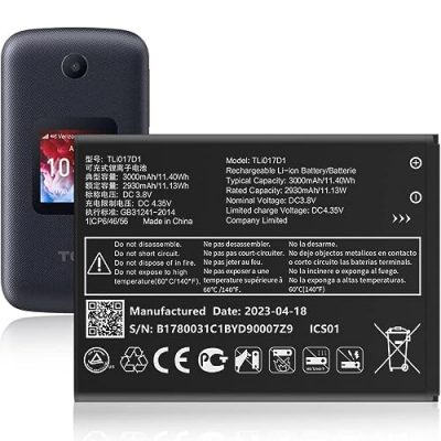 The TLi017D1 Battery is a high-quality replacement battery for the TCL Flip Pro VZW-TCL-4056W model. With its 3000mAh large capacity Li-Polymer battery, it offers more power and longer battery life. The A+ class batteries and smart chip ensure efficient charging and lower power consumption. The battery has undergone strict quality control tests to guarantee its performance. It is recommended to fully charge and discharge the new battery after 3-5 cycles for optimal performance. Additionally, the battery should not be left plugged in for more than 24 hours, should be allowed to drain and recharge, and should not be exposed to direct sunlight or extreme temperatures. If you encounter any issues, the friendly customer service is available to assist you within 24 hours.