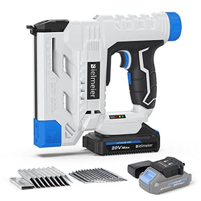 The Bielmeier 20V Cordless Brad Nailer is a versatile and convenient tool for upholstery and carpentry projects. With its cordless design, you can use it anywhere without the need for electric power. It is lightweight and easy to use, with a quick-release loading magazine for fast installation of staples and nails. The nail gun features a safety nose pin to prevent accidental firing and a rechargeable lithium-ion battery for extended use. The package includes the nail gun, battery, charger, staples, and nails, along with a one-year warranty and a 30-day free return policy. Overall, it offers excellent performance and is a reliable tool for both professionals and DIY enthusiasts.