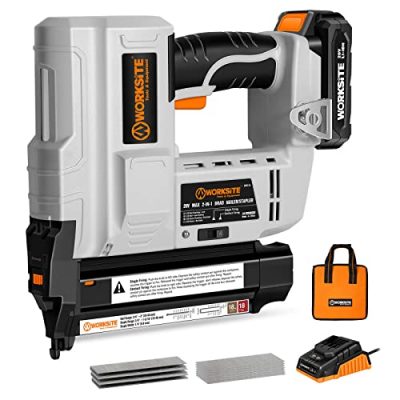 The WORKSITE Cordless Brad Nailer is a versatile nail gun that is perfect for softwood DIY projects. It operates on a lithium-ion battery, eliminating the need for a compressor or gas cartridges. With its cordless design and built-in LED light, this nail gun offers convenience and visibility in various workspaces. It can drive a range of 18 gauge brad nails and staples, making it suitable for carpentry, picture framing, and door or window molding installation. The nail gun also features an impact force adjustment mechanism for precise countersinking. Although it has received mixed reviews, with some users experiencing misfires and inconsistent nail depth, it offers good performance for minor trim work. Overall, the WORKSITE Cordless Brad Nailer provides a decent option for DIY enthusiasts.