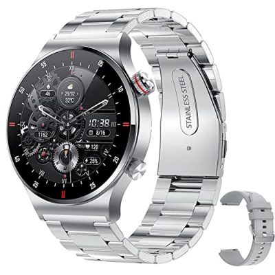The FILIEKEU Women Men Smart Watch is a feature-packed device that offers Bluetooth call and SMS alerts, multi-functional smart notifications, fitness tracking, IP67 water resistance, high-definition touch screen, and custom dial options. It also includes healthy sleep and heart rate monitoring capabilities. With a compatibility with both iOS and Android devices, the smartwatch boasts a long battery life of up to 5-7 days on a full charge. The watch comes with both a comfortable silicone strap and a stainless steel strap. The FILIEKEU company offers excellent customer service and is responsive to any quality problems. With a sleek silver design, this smartwatch is a superb choice for tracking your fitness and staying connected.