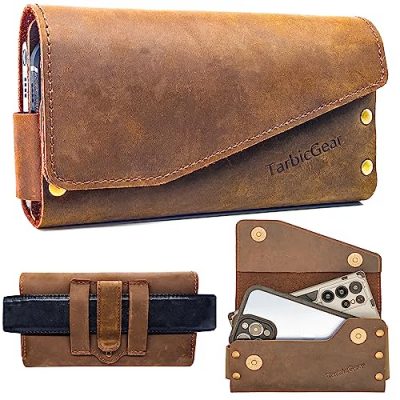 The TarbicGear Dual Large Cell Phone Holster is a convenient and stylish solution for carrying two large phones. Made from durable Crazy Horse Leather, it provides protection for your phones from shocks and scratches. The holster features a strong magnetic closure, making it easy to open and close. It also includes card slots, allowing for the storage of cards or a debit card. With its spacious interior dimensions, it can accommodate any universal phones within the specified size. The TarbicGear Dual Large Cell Phone Holster is designed for both practicality and style, making it suitable for various lifestyles.