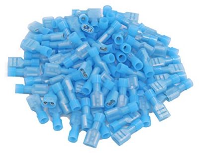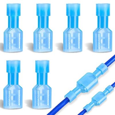 The 100 Pcs XHF 16-14 AWG Nylon Female Spade Connectors Quick Disconnect Wire Terminals Insulated Wire Crimp Connectors Blue are brand new high-quality spade wire crimp terminals that offer convenient, quick, and safe disconnects. These connectors are designed to prevent wiring faults and are ideal for electrical wiring. With features like tin plating/matte plating, nylon cover insulation, and plated copper cores, they are engineered to hold the strongest crimps and prevent corrosion. The package includes 100 durable fully insulated nylon quick disconnects. These connectors meet the standards of RoHS, CE, and CSA certified. They come with a 100% satisfaction guarantee and excellent customer service. These spade connectors are a reliable choice for all your electrical wiring needs.