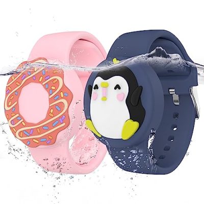 Keep your children and elderly loved ones safe with these Waterproof Air tag Bracelets. The hidden mode ensures privacy and prevents unauthorized access. The waterproof design allows for worry-free use during outdoor activities. Featuring a durable buckle and adjustable length, these bracelets fit a wide range of wrist sizes. Made of premium soft silicone, these bracelets are comfortable for all-day wear. Each pack includes 2 wrist bands and round lids to prevent water damage. With a customer rating of 4.7/5, these bracelets have received positive reviews for their reliability and durability. The cute penguin and donut designs are loved by kids. These bracelets make a great gift for birthdays and special occasions.