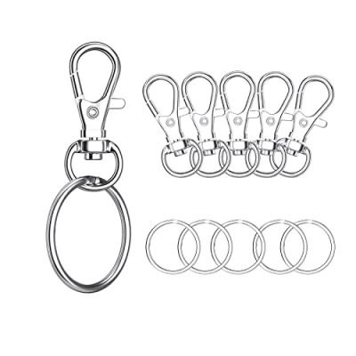 The 40PCS Metal Swivel Snap Hooks with Key Rings by LEOBRO is a versatile and durable set of key chains that are perfect for hanging keys and various DIY decorations. Made of sturdy zinc alloy metal, the swivel snap hooks can rotate a full 360°, allowing you to position the charms in any direction. The set includes 20pcs swivel clasps, 20pcs O key rings, and 20pcs large split rings for added convenience. With its clean glossy silver surface, this key chain set looks exquisite and is ideal for DIY art crafts. Whether you need keychains for personal use or for crafting projects, this set is a great choice. Note that it may not be suitable for very large heavy pieces. Overall, the 40PCS Metal Swivel Snap Hooks with Key Rings is a high-quality and versatile keychain set that provides excellent value for its price.