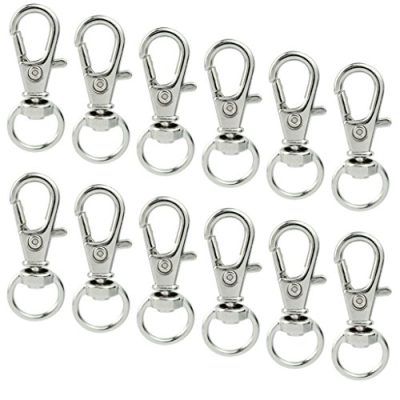 The 50 pcs Swivel Clasps Lanyard Snap Hook is a versatile accessory made of high-quality zinc alloy. With a total length of 1.3 inches and a ring inner diameter of 8.5mm, these clasps are perfect for various needs. They are durable and can easily clip keys to purses or belt loops, holding car remotes as well. The package includes 50 clips, making it suitable for multiple uses. Whether it's for hanging photos, making lanyards, or creating handmade dog collars, these hooks are ready to use. The metal swivel clamp opening ensures a tight grip and easy use. These hooks securely close, preventing your items from falling out. The creative possibilities are endless, making them ideal for kids' art projects, hanging curtains, and displaying photographs. With positive customer reviews and a rating of 4.6/5, these swivel clasps provide great value for their price.