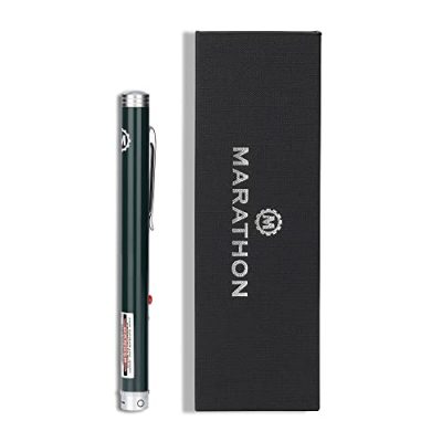 The Marathon Multi Symbol Laser Pointer is a high-quality laser pointer that features the latest crystal technology to produce a bright 650nm red laser beam. With a range of 1 mile during night-time hours and almost 2 miles in broad daylight, this laser pointer is perfect for various applications. It comes with four custom pointers in constant wave output mode, including precision dot, circle, narrow line, and arrow. The pen-shaped design makes it convenient for highlighting information on presentations, graphics, board meetings, and more. The laser pointer is built to military specs and is TAA compliant. It is manufactured by Marathon, a family-owned and operated company with a long history of producing precision timing instruments.