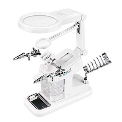 The Helping Hands Soldering Station with Magnifier Light is a useful tool for amateurs and professionals alike. With its multiple magnifiers and adjustable clips, it provides a hands-free experience, making soldering and other fine work much easier. The bright LED light and stable base further enhance its functionality. While some users experienced issues with the stiffness of the arms and the stability of the base, overall, it offers great value for its price. Whether you’re working on PCB soldering, craft projects, or electronic repairs, this magnifying glass with light is a reliable companion.