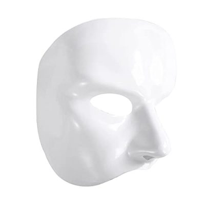 The Men's Mask Masquerade Mask Phantom of The Opera Half Face Mask Vintage Design in white is a thick and sturdy mask made of high-quality eco-friendly hard plastic. It is created with lightweight materials for comfortable wear, with a secure elastic band that fits most face shapes. The mask features a vintage design inspired by the phantom of the opera, giving it a cool and mysterious look. It is perfect for various occasions such as Halloween, Christmas, masquerade parties, and more. Although some users have mentioned minor issues like the strap placement and material discomfort, overall, the mask offers good value for money and great stage performance quality.