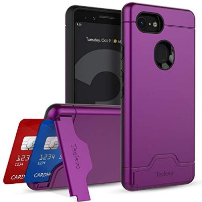 The Teelevo Wallet Case for Google Pixel 3 is a dual-layer case that offers both protection and functionality. The case is compatible with Google Pixel 3 (2018) and features a hidden card slot that can store up to 2 cards. It also includes an integrated kickstand for hands-free viewing. The dual-layer design provides drop protection, and the precise cutouts allow easy access to all ports, buttons, and camera. Available in the color Purple, this wallet case is designed specifically for the Google Pixel 3, ensuring a perfect fit. With a customer rating of 4.1/5, this case has received positive reviews for its functionality, card storage, and durability. However, some users have reported issues with the case breaking easily and the color wearing off over time.