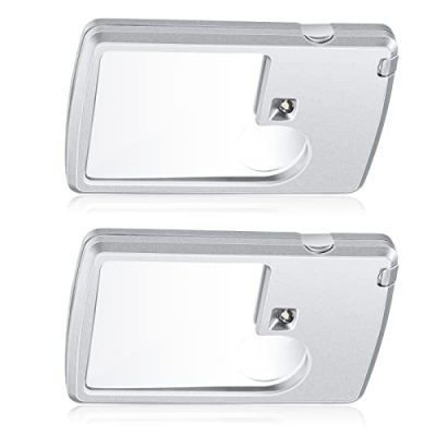 The Pocket Magnifying Glass with Light is a convenient and versatile tool for various activities such as reading, jewelry inspection, experiments, investigations, menu reading, and travel. This package includes two magnifying glasses with different magnification levels (3X and 6X) along with batteries and storage bags. The magnifiers are made with scratch-resistant acrylic lenses and a sturdy ABS plastic frame, ensuring durability and long-term use. They also feature low wattage bright lights, making them suitable for different lighting conditions. These credit card-shaped mini magnifiers are compact and lightweight, allowing you to easily carry them in your wallet or pockets. With their wide range of applications, these magnifying glasses are a handy companion for everyday use.