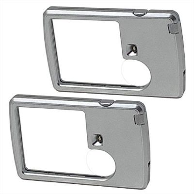 The 2 Lighted Magnifiers are a convenient set of pocket magnifiers with lights, perfect for reading on the go. The package includes two magnifiers – a 3X 6X Pocket Magnifier and a credit card-sized magnifier with rulers and a badge holder clip slot. Both magnifiers are durable, protected by a rigid plastic frame, and preassembled with batteries for immediate use. The LED lights provide clear illumination for distortion-free magnification in any light condition. The credit card magnifier easily stores flat in a wallet, while the pocket magnifier can be carried in a pocket or purse. These magnifiers are suitable for cruise goers, trade show attendees, seniors, adults, children, and hobbyists. They are also great for reading small print, such as menus. Overall, the 2 Lighted Magnifiers offer versatility, durability, and convenience for those in need of magnification on the go.