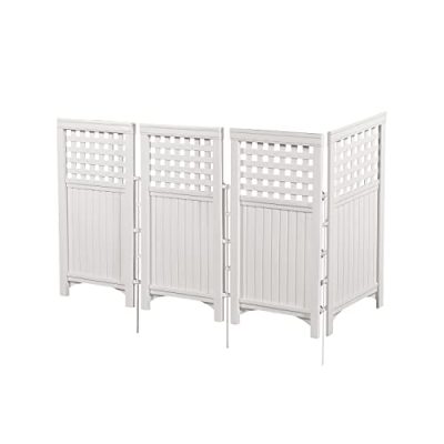The Suncast 4 Panel Reversible Outdoor Screen Enclosure is a versatile and stylish solution to add privacy and concealment to your outdoor space. With its wood-like design and lattice panels, it will match most outdoor decors. Constructed from heavy-duty resin and steel, this enclosure is durable and weather-resistant. It can be used to hide air conditioners, garbage cans, or enclose an outdoor shower. The large size of each panel provides excellent coverage, and the hinged panels allow for flexible arrangement. Although some customers have mentioned concerns about its sturdiness in strong winds, overall, it is a cost-effective and convenient option to create a private and aesthetically pleasing outdoor area.