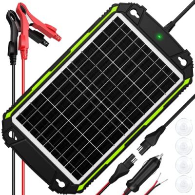 Keep your car battery charged with the Upgraded 7.5W Solar Battery Trickle Charger Maintainer. This portable and waterproof solar panel kit is designed for various vehicles and powersports. With an intelligent charger controller, comprehensive battery protection, and a durable construction, it offers high conversion and stable output. The easy installation and use make it convenient for any 12V battery. The charger comes with a 12-month warranty and lifetime technical support. Overall, this solar battery trickle charger maintainer is a reliable and efficient solution to keep your batteries powered.