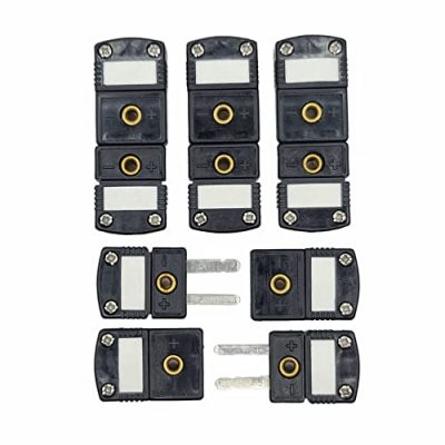 Introducing the Xnrtop K-Type Thermocouple Connector Adapter Cable Connector 6 Pairs Male and Female Plugs! This pack includes 12 thermocouple probe connectors, with 6 male and 6 female plugs made of electronic parts and plastic. With real chromel alumel contacts and miniature dimensions, this K-type thermocouple connector works seamlessly with all K-type thermocouple wires and extension wires. The connectors are designed with good insulation and metal pins for optimum contact. Additionally, the plugs feature small holes in the center, allowing you to secure them using a cable binder, string, or even by screwing them to equipment. Widely used in thermocouple and RTD circuits, this connector ensures quick and reliable contact. However, some customers have reported missing nuts in the female connectors.