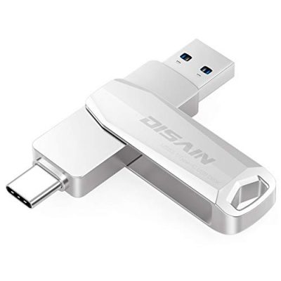 The DISAIN USB C Flash Drive is a versatile and durable storage solution that allows you to quickly transfer files between devices. With its 2 in 1 design featuring a USB C port and USB 3.1 port, you can easily free up space on your USB C devices or move files to your computer, car audio system, and more. The USB 3.1 technology ensures fast transfer speeds, up to 3 times faster than USB 2.0 flash drives. Made from premium zinc alloy, this drive is waterproof, shockproof, and built to last. Its innovative 360° rotation anti-lost clip design allows you to conveniently hang it on your keychain. Compatible with various devices, this USB C flash drive is a reliable and convenient storage solution.