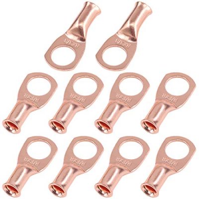 Rustark 10 pcs UL Wire Lugs 8 Gauge 8 AWG 3/8'' Bare Copper Eyelets Tubular Ring Terminal Connectors