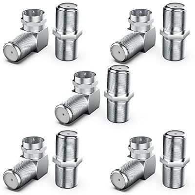 The 5 Combos F Type Female to Male Adapter Coaxial Cable Right Angle Connector 90 Degree & F Type Female to Female Coax RG6 Cable Extension Adapter is a versatile set of connectors designed to enhance your coaxial cable connections. With a range of features including F-F extenders, right angle connectors, and helpful applications, this set is perfect for extending cable lengths and adapting RG6 coaxial cables to a 90 degree angle. It works well with antennas, satellite receivers, and cable TV. The package includes 5 female to male right angle adapters and 5 female to female connectors, all in a convenient retail bag. However, some customers have reported issues with the connectors breaking easily or not working at all.