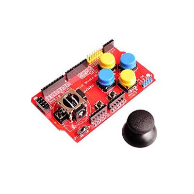 The HiLetgo Gamepad Joystick Shield for Arduino Expansion Board is a handy device for Arduino enthusiasts. It provides various interfaces like NRF24L01, Nokia 5110 LCD, and Bluetooth module for wireless communication. With compatibility for Arduino UNO and an operating voltage of 3.5v or 5v, this shield offers convenience and flexibility. However, customer reviews reveal some drawbacks, such as the lack of documentation and inaccuracies in the product description. Users have also reported issues with the joystick's performance, including non-linearity and sticking. The absence of the Bluetooth and I2C headers as advertised has caused disappointment as well. Despite these shortcomings, the shield is praised for its solid construction and functionality. Overall, the HiLetgo Gamepad Joystick Shield for Arduino Expansion Board is a decent option for those looking to enhance their Arduino projects.