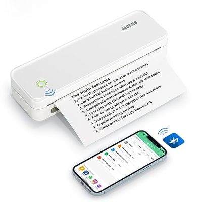 The JADENS Portable Printers Wireless for Travel is a cost-effective and ink-free solution for all your printing needs. It offers easy portability for on-the-go printing and effortless setup via Bluetooth or USB. With crisp printing quality and long battery life, this printer is perfect for businessmen and students. It also comes with adjustable paper sizes and reliable after-sale support. The JADENS Portable Printers Wireless for Travel is a versatile and convenient option for printing documents of various sizes. Its compact design and reliable performance make it a must-have for anyone in need of a portable printer.