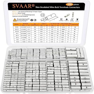 The SVAAR 380pcs Non Insulated Butt Connectors Kit is a reliable option for auto DIY enthusiasts. Made from high-quality tinned red copper, these connectors ensure excellent conductivity and corrosion resistance. The thick material and wire stop barriers provide strong crimps and effective compression. Customers should be cautious of the connectors’ thinner metal construction and ensure proper crimping. With its wide range of sizes and easy-to-use design, this kit is suitable for various electrical applications. Whether you’re working on automotive or marine projects, this kit provides the necessary components for secure wire connections.