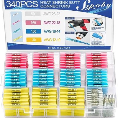 The 340PCS Heat Shrink Butt Connectors, Sopoby Marine Grade Electrical Wire Connectors Kit, Tinned Red Copper Insulated Waterproof Crimp Terminals Butt Splice is a high-quality product that ensures secure crimping every time. With a thick tinned copper barrel, minimal voltage drop, and high current flow, these connectors prevent short circuits and make your connection projects safer. The double wall design and hot melt adhesive ensure strong connections and prevent wires from slipping. The connectors are durable and resistant to corrosion, with excellent wire contact for increased current flow. This kit is versatile and can be used for various applications, including motorcycles, boats, RVs, and Christmas lights. With positive customer reviews and a rating of 4.7/5, this product offers great value and performance.