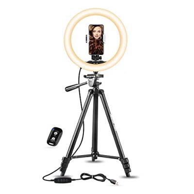 The UBeesize TR50 and 10 inch Ring Light Selfie Ring Light is a versatile and adjustable product that is perfect for live streaming, makeup application, and YouTube videos. The ring light features 3 light colors and 10 levels of brightness, allowing you to find the perfect lighting for any situation. The tripod stand is extendable up to 50 inches and can be adjusted to any height, making it suitable for both tabletop and floor use. The ring light also includes a phone holder that can be placed directly in the ring for convenient use. With a wireless remote control and a 3-year replacement service, this product offers convenience and peace of mind. Overall, the UBeesize TR50 and 10 inch Ring Light Selfie Ring Light is a high-quality and versatile option for those in need of professional lighting for their videos and live streams.