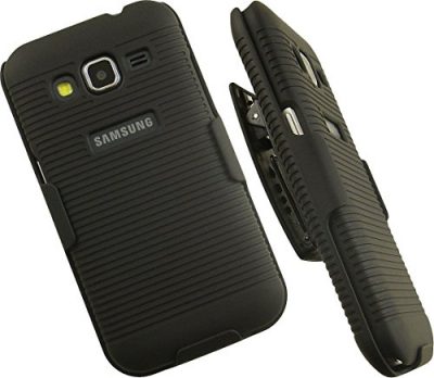 The Nakedcellphone Black Ribbed Rubberized Hard Case Cover is a protective cover for the Samsung Galaxy Core Prime phone. The case comes with a custom holster that holds the phone both ways, offering face-out viewing or face-in LCD screen protection. The clip on the holster is lined with soft microfiber interior, ensuring the phone’s safety. The case allows for full functionality of the phone while providing grip and durability. However, it lacks a camera opening, requiring the phone to be removed for taking pictures. The case offers good protection against dropping or banging, but the edge of the phone is not fully covered. Overall, it is an affordable and practical option for those looking for a budget solution to protect their Samsung 360 phone.