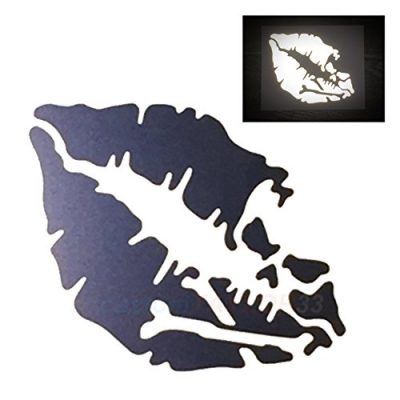 The customTAYLOR33 High Intensity Reflective Vinyl Death Kiss Skull Crossbones Lips Decal is a stylish and durable accessory for cars, motorcycles, helmets, wind screens, laptops, and cellphones. Made from high intensity grade reflective vinyl, this decal is easy to apply and comes with clear transfer tape. It features an extremely strong adhesive and a UV and solvent resistant coating for added durability. Whether you want to add some personality to your vehicle or make a statement with your phone or laptop, this decal is a great choice. The 3-inch size comes in a pair, while all other sizes are for a single decal. Available in black color.