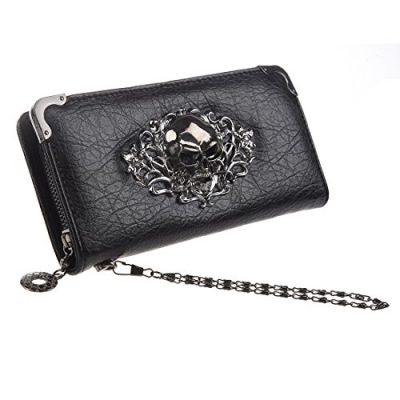 The HOYOFO Skull Wallet for women is a stylish and functional accessory for keeping your personal essentials organized. Made of high-quality PU leather, this wallet features a unique 3D metal skull design that adds a touch of gothic flair. With its zip around closure, it offers convenient access to its various compartments including 8 card holders, 3 compartments for cash or phone, and 1 zippered pocket for coins and small items. The wallet also comes with a detachable bracelet chain, allowing it to be used as a wristlet purse. It is a great gift option for special occasions like Christmas, birthdays, and anniversaries.