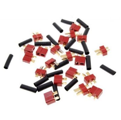 The 10 Pairs Red Ultra T Plug Connectors Deans Style For RC LiPo Battery Male and Female + (20 Pack) Shrink Tubing is a must-have for any RC hobbyist. These connectors and shrink tubing are perfect for connecting batteries, ESC, and motor in RC cars, boats, planes, helicopters, and Li-polymer batteries. The package includes 10 male and 10 female T Plug connectors, as well as 20 pieces of heat shrink tubing. The connectors are of good quality and handle the current from a 2200mAh 25C battery without overheating. The only downside is that the plastic is sensitive to heat while soldering, so caution is required. Overall, this product offers great value for its affordable price.