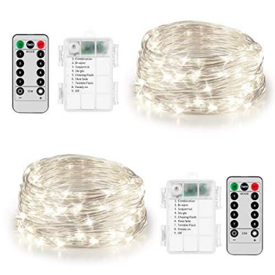 Illuminate your space with the 2 Pack Battery Operated Mini Lights. These indoor LED fairy lights are perfect for wedding party decorations, with 50 count warm white LEDs on an 18 feet silver wire. The lights are powered by 3 AA batteries (not included), with low voltage and no overheating. The silver wire is easily bendable, allowing you to shape it as desired. The lights are waterproof, but the battery box is not, so they are recommended for indoor use only. With a timer function and easy operation, these mini LED lights offer 6 hours on and 18 hours off per day. They create a soft and pretty warm white glow, making them ideal for wedding centerpieces, parties, bedrooms, and National Day wreath garlands.