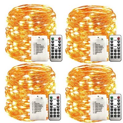 The WSgift 4 Pack 33Ft 100 Warm White Led Fairy Lights Battery Operated with Remote Control Timer Waterproof Silver Copper Wire Twinkle Lights is a versatile and beautiful lighting option for various occasions. These fairy lights are battery operated and come with a remote control for easy operation. With a waterproof design, they can be used both indoors and outdoors. The silver copper wire adds a touch of elegance, while the warm white LED lights create a cozy atmosphere. The lights have a timer function and can be set to turn off after a selected number of hours. The remote control allows for adjusting the brightness and choosing different lighting options. Overall, these fairy lights are a great addition to any bedroom, indoor or outdoor space, providing a warm and magical ambiance.