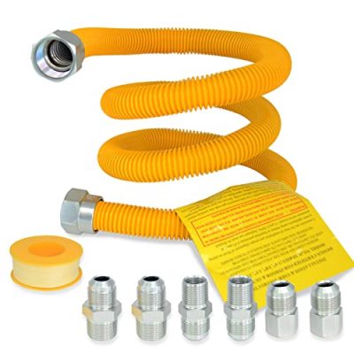 The **Hosile 48″ Flexible Gas Line Kit** is a reliable and high-quality solution for connecting gas dryers, stoves, and ranges. It offers excellent flexibility, durability, and ease of installation. With its wide range of adapter options, it can accommodate various equipment. The kit is made of durable materials and has been 100% leak tested for peace of mind. The only drawback is that the connectors may not fit all dryer sizes as stated in the description. However, overall, this gas line kit provides great value for its price. With a customer rating of 4.5/5, it is a highly recommended product.