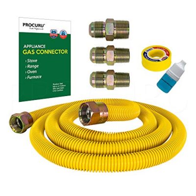 The PROCURU 5/8″ OD x 72″ Gas Flex Connector Kit is a top-quality product that offers a perfect fit and easy installation. The package includes everything you need, including brass fittings, sealant tape, and a gas leak detector. It is a reliable and durable option for connecting stoves, ranges, and furnaces. With its SafeGuard coating and CSA certification, it ensures a secure and leak-free connection. The customer reviews consistently praise the product for its performance and value. Overall, this kit is highly recommended for anyone in need of a gas flex connector for their appliances.
