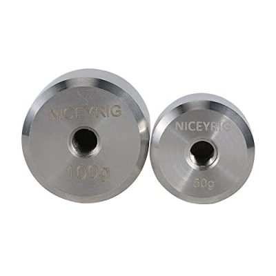 The NICEYRIG Gimbal Counterweight Set is a versatile accessory designed for camera stabilizers like the DJI Ronin RS2/RSC2/S/SC and Zhiyun Weebill S/Crane M2/Plus 3/3S/3. This set includes 100g and 50g counterweights, allowing you to balance heavy-sided cameras on the gimbal with ease. The counterweights are made of stainless steel, ensuring durability and corrosion resistance. Equipped with a 1/4'' screw and threaded hole, these counterweights are easily removable. Compatible with the NICEYRIG Counterweight Mounting Clamp 323 and 324, this set provides a reliable solution for stabilizing your camera. With positive customer reviews and a high rating, the NICEYRIG Gimbal Counterweight Set is a must-have accessory for gimbal users.