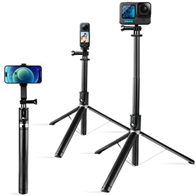The 57in Selfie Stick Tripod for Gopro – ULANZI Go Quick II Extendable Tripod Stand is a reliable and versatile accessory for action camera enthusiasts. Its quick release and magnetic mount system provide convenience and speed in connecting your camera. The tripod mode offers stability, even on uneven surfaces. Made of lightweight and durable materials, it is perfect for outdoor activities. The wide compatibility ensures that it can be used with various action cameras. While it may not fit in a GoPro case and has some limitations in camera rotation, its overall performance and customer satisfaction rate make it a great choice for capturing your adventures. Whether you’re hiking, skiing, or simply spending time with family and friends, this selfie stick tripod will enhance your photography and videography experience.
