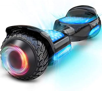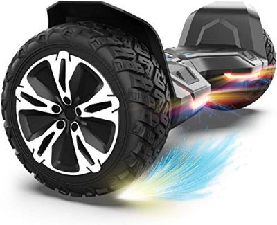 The Gyroor Warrior 8.5 inch All Terrain Off Road Hoverboard is a sturdy and durable self-balancing scooter that guarantees a safe and enjoyable ride. With its solid tires and powerful motor, this hoverboard is suitable for all terrains. It also features a built-in high-quality music speaker for added fun. The self-balancing technology makes it easy for new riders to learn and master. The hoverboard is UL2272 certified, ensuring safe charging and rides. Overall, it is a reliable and entertaining hoverboard for kids and adults alike.