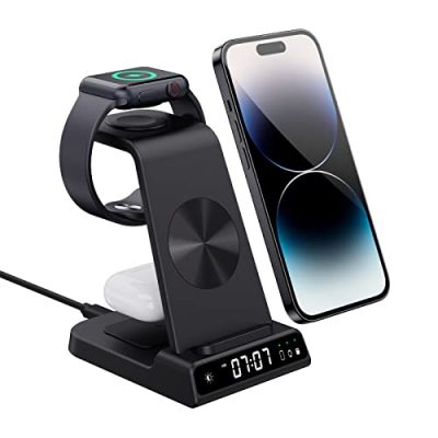 The Charging Station for Apple offers a convenient and organized solution for charging your iPhone, earbuds, and Apple Watch simultaneously. With its sleek design and adjustable digital clock, it not only provides functionality but also enhances your workspace or bedside table. The wide compatibility ensures compatibility with various devices, adding to its versatility. However, it is important to note that it may not be suitable for fast charging, and there have been some reports of issues with the Apple Watch charging portion. Despite these drawbacks, this charging station is an excellent choice for those looking to declutter their charging setup.