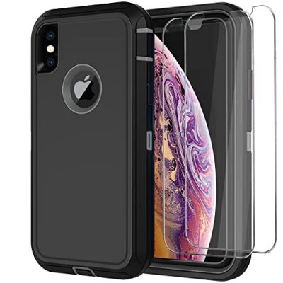 The COOLQO Compatible for iPhone X Case/iPhone Xs Cases 5.8 Inch is a military-grade protective case that offers 360-degree full body coverage for your phone. Made with premium hybrid hard Polycarbonate (PC) and soft Thermoplastic Polyurethane (TPU/Silicone), as well as included tempered glass screen protectors, this case meets Military Standard MIL-STDll and can protect your phone from drops of up to 10 feet. The raised lips ensure camera and screen protection, while the materials used are super anti-yellowing for long-lasting quality. The case also includes two Tempered Glass Screen Protectors with oleophobic coating to resist oils and prevent fingerprints. It is compatible with iPhone X and iPhone Xs and comes with a 90-day warranty.