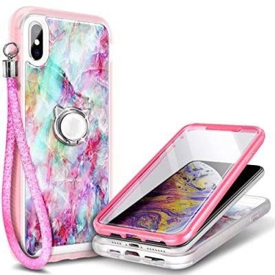 The ICEDIO iPhone X/Xs Case is a multi-colored, slim fit TPU cover with a shockproof design. It features distinctive fashionable designs that are compatible with wireless charging. The case has undergone a 12ft. drop test and includes air cushions built-in on the four corners for extra protection. It also has raised bezels to lift the screen and camera off flat surfaces. The durable anti-slip TPU material keeps the iPhone lightweight and stylish, while also making it easy to install. The case comes with a screen protector and a lifetime warranty. It is specially designed for girls and women who want a stylish and protective case for their iPhone.