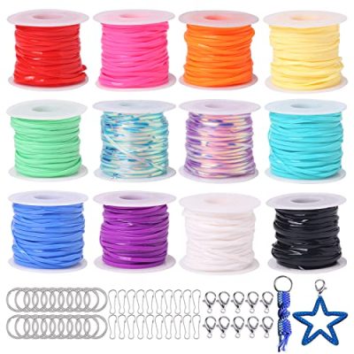 The Lanyard String is a versatile craft kit that allows both kids and adults to explore their creativity. This kit includes 12 rolls of plastic lacing cord in assorted bright colors, along with key chain ring clips, snap clip hooks, and lobster clasps. The lanyard string is made of environmentally friendly and non-toxic PVC plastic, ensuring safety for all users. With a total length of 787 feet, there is plenty of material to make friendship bracelets, keychains, lanyards, and various DIY crafts. The flat shape and appropriate size of the string make it easy to weave. Whether you want to make key fobs, lanyard necklaces, or zipper pulls, this kit has everything you need. Suitable for family activities and handmade projects, the Lanyard String is an exciting craft that brings back nostalgia and provides endless entertainment.