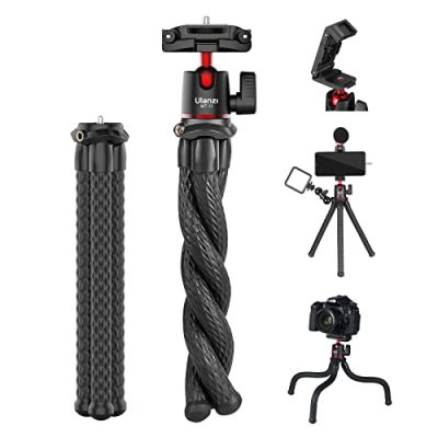 The ULANZI Camera Tripod is a versatile and compact tripod that offers exceptional quality and functionality. It features a hidden phone tripod mount with a cold shoe, allowing you to mount a microphone or LED video light for vlogging or selfie shots. The 1/4 thread enables you to attach a monitor magic arm for extended capabilities. With wide compatibility, it can accommodate DSLR cameras from Sony, Canon, Nikon, as well as various mobile devices like iPhone 12, Samsung Galaxy S10, and more. The ball head allows for 180° rotation, supporting both vertical and horizontal shooting. Its flexible legs can be wrapped around different objects, making it suitable for various shooting environments. Overall, the ULANZI Camera Tripod offers exceptional versatility, stability, and quality that makes it a game-changer in mobile photography.