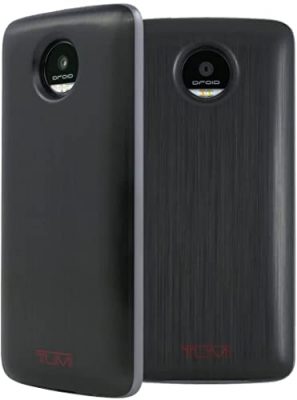 The TUMI Style Shell Moto Mod is a sleek and stylish snap-on back plate designed for the Motorola Moto Z Droid and Moto Z Force Droid. With its premium quality metallic exterior finish, this mod adds a touch of elegance to your phone. The black color complements any device, and the snap-on design ensures easy installation. It also provides added protection for the camera lens and acts as a speaker box. While it may add some thickness to your phone, it works well with a bumper case. Please note that this mod is not a battery pack and does not offer any additional functions. Overall, it is a great accessory to enhance the appearance of your Moto Z series smartphone.