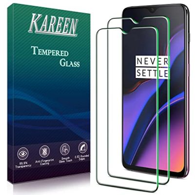 KAREEN [2 Pack] Tempered Glass is a high-quality screen protector designed for OnePlus 6T and OnePlus 7. With a 9H hardness rating and anti-scratch properties, it provides excellent protection against wear and scratches. The ultra-thin 0.33mm tempered glass maintains the original responsiveness and clarity of your device's screen. The oleophobic coating reduces fingerprints and sweat, keeping your screen clean. The package includes 2 tempered glass screen protectors, wet and dry tissues, and dust removal stickers. Although the protector is slightly smaller than others, it offers easy installation with no bubbles. Overall, it is a reliable and durable screen protector for OnePlus 6T and OnePlus 7.