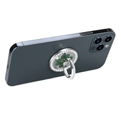 The Diamond Phone Ring Holder is a stylish and practical accessory for your smartphone. It is compatible with most smartphones and features a 360° rotation kickstand. The phone ring holder is made of zinc alloy with 44 rhinestones, adding elegance and beauty to your device. The strong 3M adhesive ensures a tight hold, preventing your phone from dropping. With a silver and green color scheme, this phone ring holder is both functional and fashionable. Simply apply it to your phone or phone case and enjoy the convenience and style it brings.