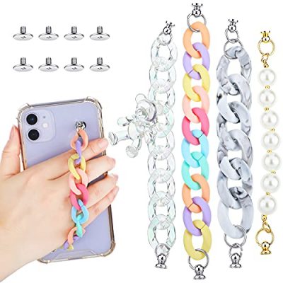 The Frienda 4 Pieces Phone Case Chain Beaded Secure Mobile Phone Finger Starp is a practical and stylish accessory for your phone case. This package includes 4 phone case straps and 8 screwback round head rivets, allowing you to customize your own mobile phone case. The straps are made of high-quality resin and plastic, ensuring durability and exquisite craftsmanship. Once installed, the phone grip strap prevents accidental drops and provides a secure hold. These phone finger chains add a touch of chic and attractiveness to your phone case, making it stand out. Suitable for most mobile phone cases, this phone hand strap is a must-have DIY accessory. Despite some concerns about durability and compatibility with thicker cases, customers generally find these phone case straps cute and enjoyable for personalizing their phones.
