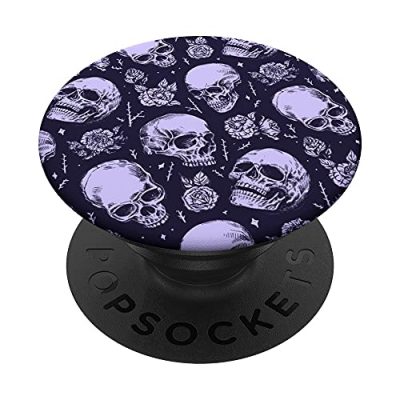 Express your emo, gothic, and alternative aesthetic with the Emo Grunge Aesthetic Gothic Skull And Roses Goth Halloween PopSockets Swappable PopGrip. This unique phone accessory features a captivating design of skulls and roses, perfect for those who appreciate a darker style. The PopGrip allows you to switch out the top design or remove it for wireless charging. It also doubles as an expandable stand for handsfree video watching and photography. The adhesive is advanced, allowing for easy removal and repositioning on most devices and cases. Note that it works best with smooth, hard plastic cases and may not stick to certain silicone, waterproof, or highly textured cases. Enjoy adding a touch of emo and gothic flair to your mobile experience with this stylish PopGrip.